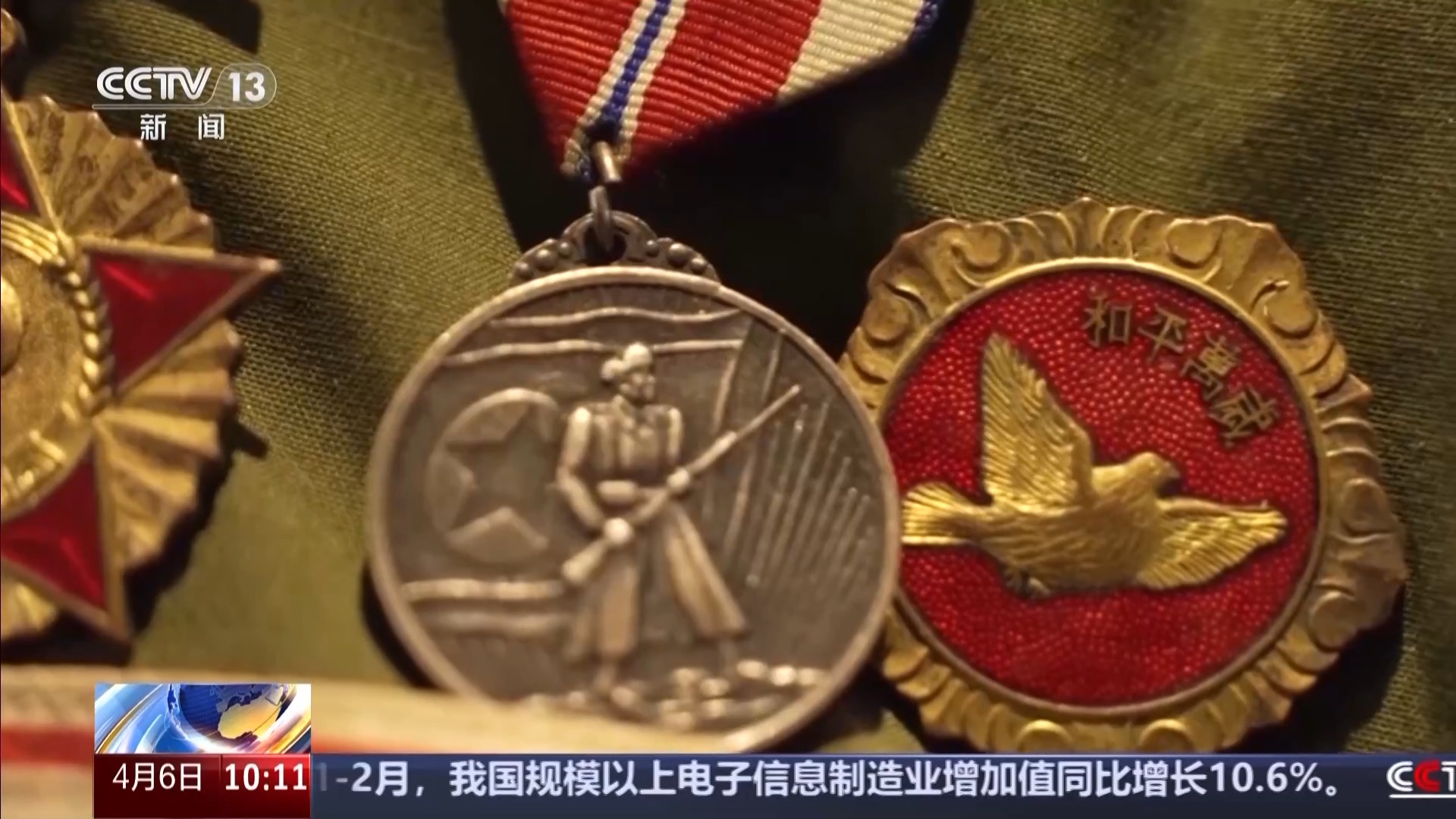 在陕西西安二一二所,记者见到了93岁高龄的朱焕江老人。得知记者登门拜访,想要了解他当年抗美援朝的事迹时,他非常坚持要先换上军装。换好衣服后,身上挂满勋章的朱焕江老人,郑重地拿出了他珍藏多年的抗美援朝纪念章。