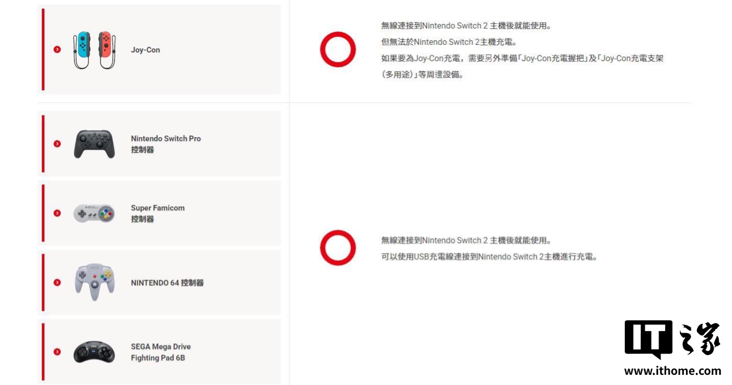 IT之家4月6日消息,任天堂官网显示,初代Switch的Joy-Con手柄和Pro手柄仍可以配对Switch2游戏机进行操控,不过如果相应Joy-Con手柄电量不足,则仍需插回初代Switch进行充电。