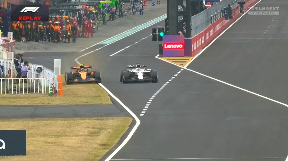 出站时诺里斯想与维斯塔潘争夺位置,结果上草↓