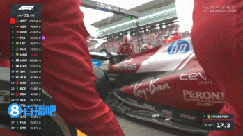 第30圈,使用硬胎起步的汉密尔顿进站换上中性胎,换胎用时2.2秒↓