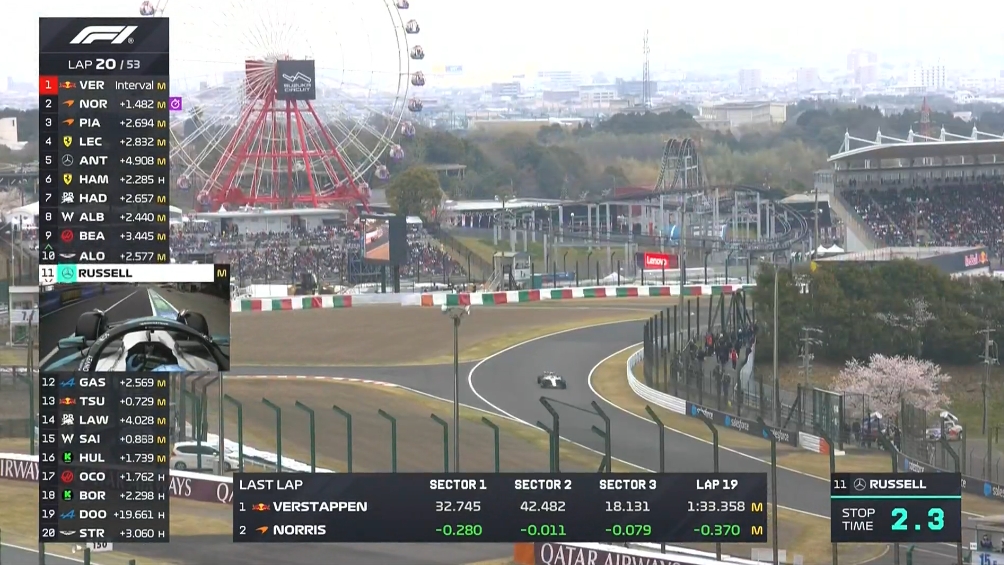 第19圈,用中性胎起步的车手中,拉塞尔第一个选择进站换上硬胎↓
