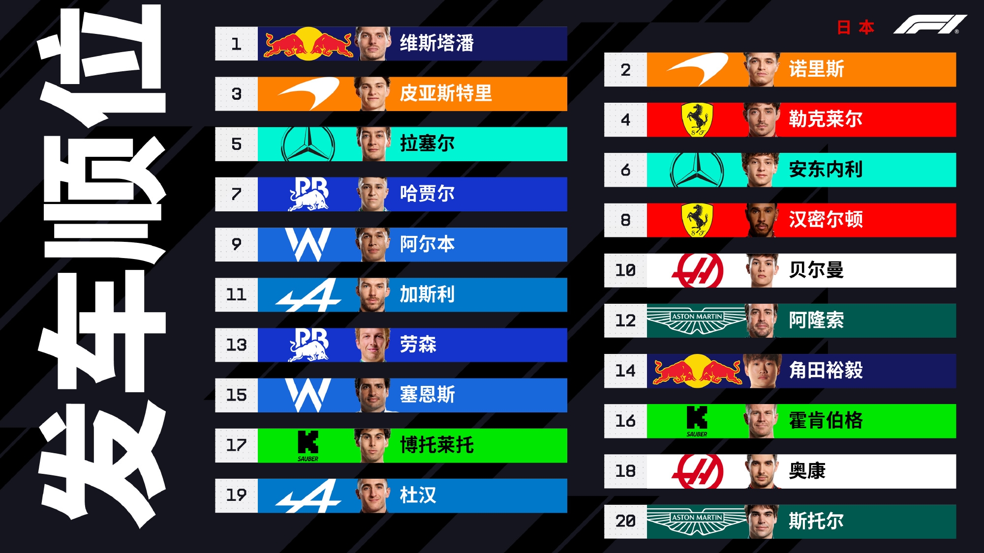 直播吧04月06日讯2025赛季F1日本大奖赛正赛,维斯塔潘杆位起跑拿下冠军,这是他连续第四年在这里Poletowin,也是他这赛季的首个分站冠军。迈凯伦的诺里斯和皮亚斯特里分列二三位,勒克莱尔第四。