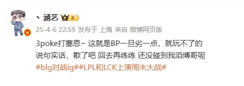 涵艺谈BLGvsIG第二局:3poke打塞恩~说句实话散了吧回去再练练