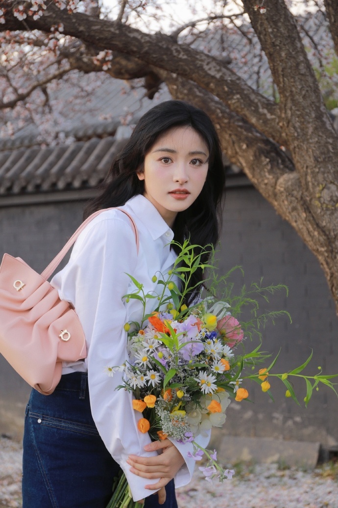 沈月白衬衫捧花照,是拥抱春天的沈月,这也太明媚感了吧,谁能不被美到呢,期待住和沈月的多多见面啦~
