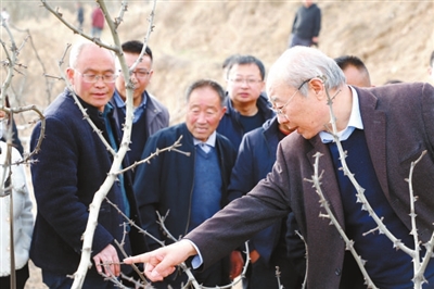 杨建雷也在现场边演示科学剪枝方法,边给大家讲:“初果期树,对有生长空间的枝和平缓枝甩放,过旺枝、直立枝通过拉、别等措施,培养结果枝组。结果枝应疏弱留强、疏短留长、疏小留大……”村民们频频点头。