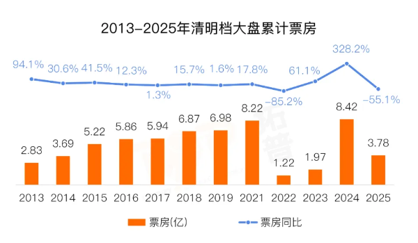 《我的世界大电影》领跑清明档期,档期票房1.05亿元,占比27.9%;《向阳·花》位居清明档第二,档期票房8001万元,占比21.2%;《哪吒之魔童闹海》居清明档第三,档期票房7175万元,占比19.0%;《不说话的爱》居清明档第四,档期票房5259万元,占比13.9%。