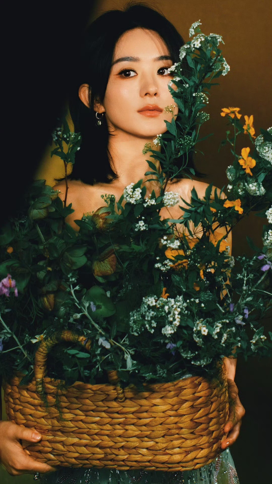 赵丽颖草木清香春色入画,高定抹胸刺绣裙装,满分春日绿意感的丽颖,直播状态满分的元气呀,一整个有被美到了!