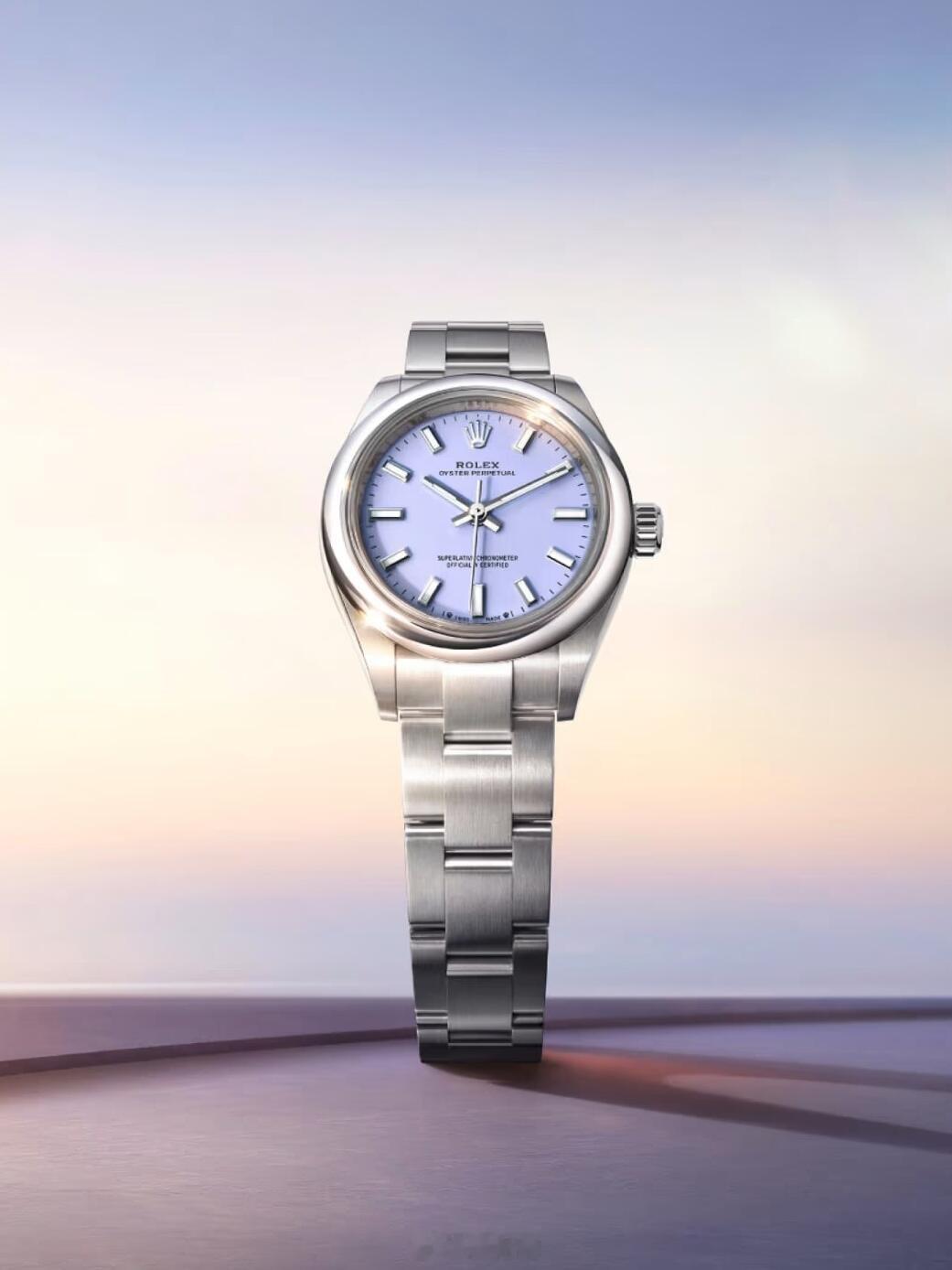 蚝式恒动型Oyster Perpetual以粉彩美学营造出轻松愉悦的氛围。28mm薰衣草紫哑光盘、36mm沙米色、41mm开心果绿漆面,每一款颜色都取自自然又超越自然 。焕新纤薄表壳搭配优化后的蚝式带扣,线条更加流畅;2232/3230机芯配备Paraflex缓震装置,55 - 70小时动力储备,确保精准走时。