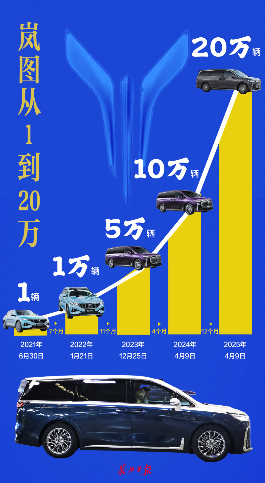 从1万到10万,两年多;从10万到20万,时间打了“对折”。值得一提的是,2024年,岚图知音作为“中国新能源车年产第1000万辆”代表车型,见证了这一荣耀。