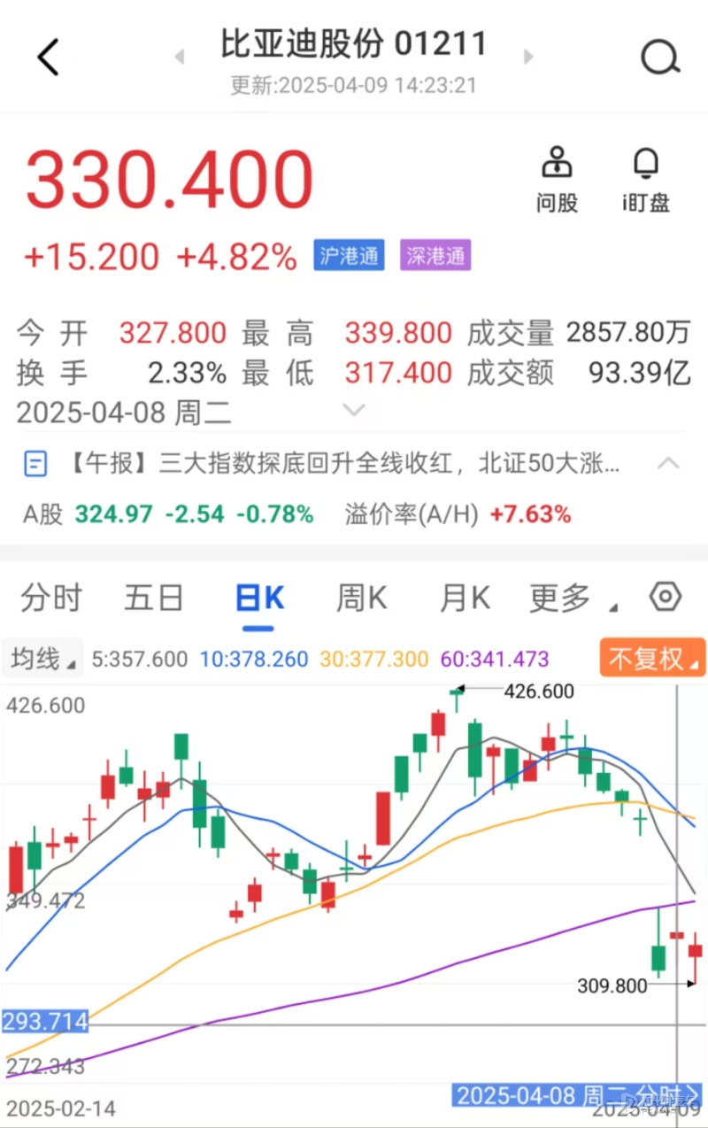业绩预告发布当日,比亚迪港股(01211.HK)盘中一度大涨7.17%,市值重回万亿港元。