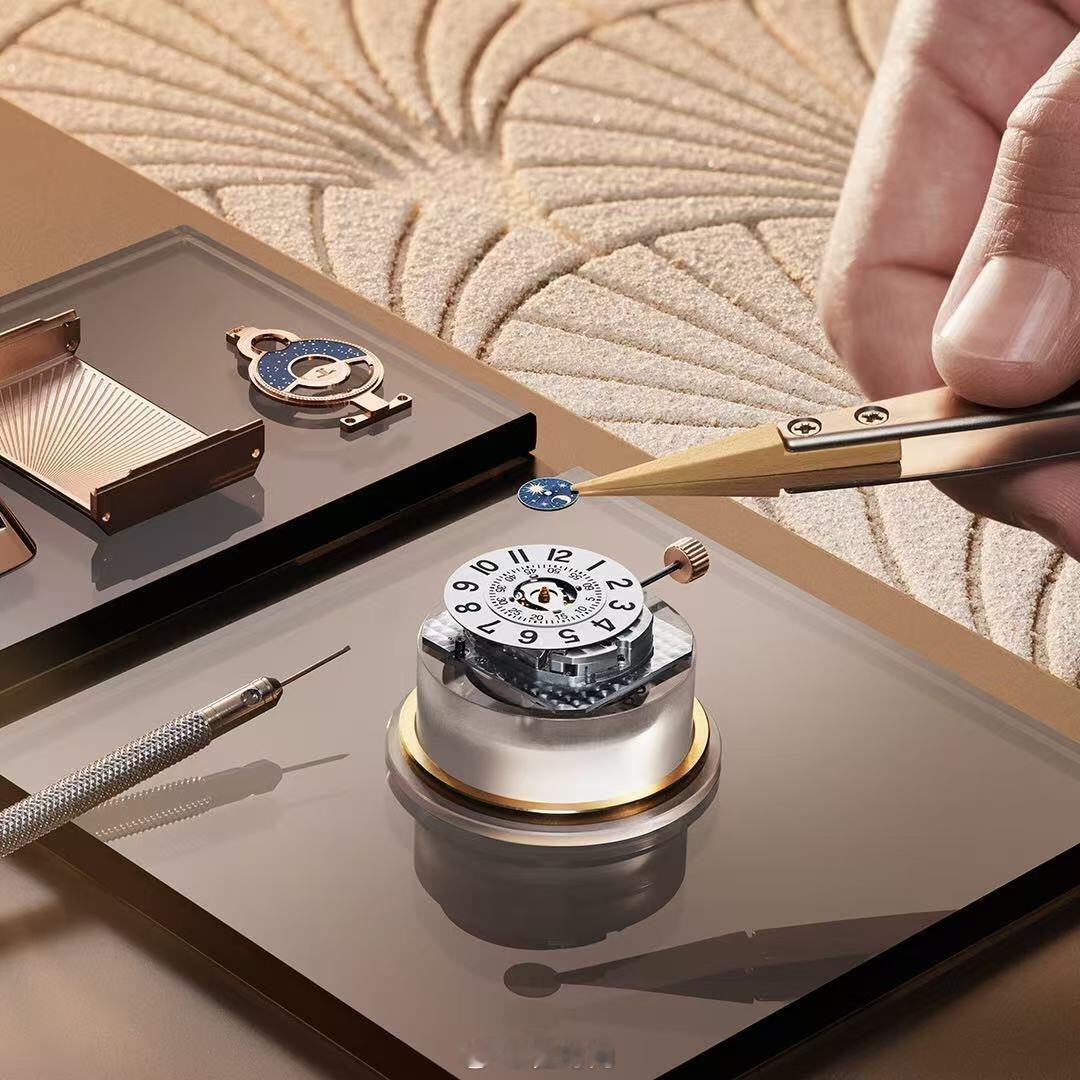 表盘的珐琅工艺堪称一绝,古老而繁复的技艺赋予表盘如瓷般细腻光滑的质感,深蓝与玫瑰金的搭配相得益彰,尽显高贵典雅。制作过程中,10小时的手工镶嵌,颗颗精选宝石被精准安置,每一枚腕表都凝聚着工匠的心血,成为独一无二的艺术珍品。