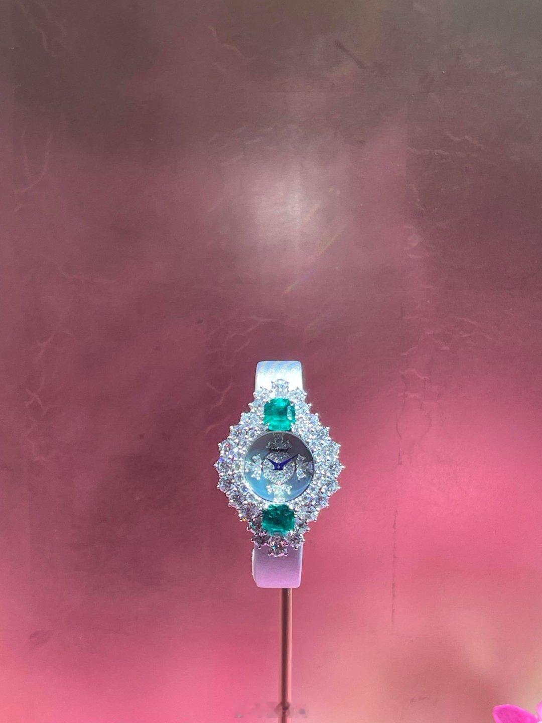 展会中,百达翡丽一款价值约三百万瑞郎的时计,以人民币两千二百多万元的高昂身价荣膺“表王”称号。它宛如一件稀世珍宝,通体金光夺目,复杂的工艺与五彩宝石交相辉映,诠释着高级制表的无上荣耀,是制表师精湛技艺与极致追求的结晶。