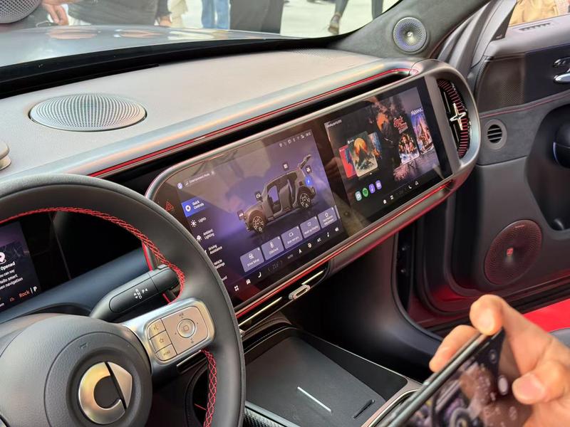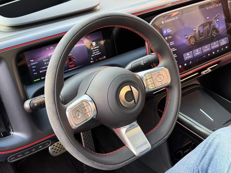 内饰方面,新车整体延续了现款车型独特的3屏内饰设计,13英寸OLED2.5K的双联屏无比瞩目,像操场跑道一样的屏幕边框设计也是非常的“smart”。此外,新车加入了碳纤维装饰点缀,并将方向盘中间Logo增加了BRABUS标识。