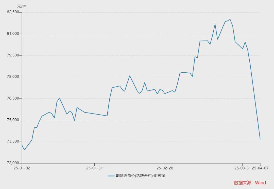 国信期货有色首席分析师顾冯达表示:“以铜为代表的有色金属因高度依赖国际贸易和全球制造业复苏而显著承压。4月7日,以铜和原油为代表的多个大宗工业品期货品种一度触及跌停,多数周期品触及近期低位,反映了市场对工业金属宏观冲击下需求前景的悲观预期。”