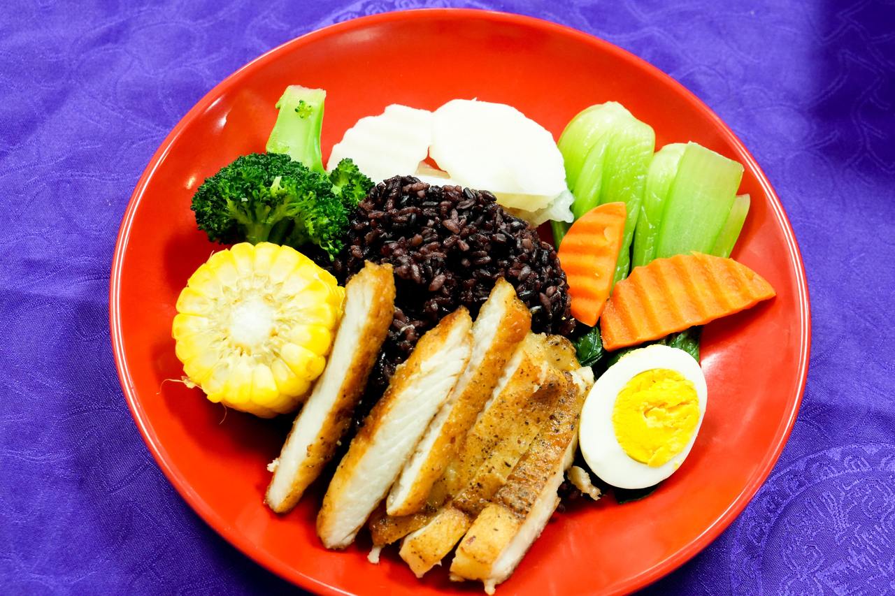 “牛肉,鸡蛋,蔬菜,玉米,黑米饭搭档,拼盘很用心,适合发朋友圈,点赞!”