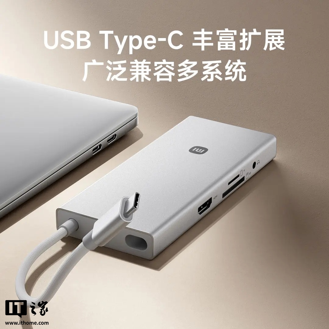 在兼容性方面,小米Type-C十合一扩展坞支持Windows、Android、macOS和Linux等主流操作系统,用户可以实现即插即用,并支持热插拔功能。不过IT之家需要提醒的是,用户在使用该扩展坞时,需确认笔记本电脑的Type-C接口规格。只有具备全功能C口的笔记本电脑,才能支持扩展坞的全功能输出。如果笔记本电脑的Type-C接口并非全功能C口,那么仅能支持部分扩展功能。