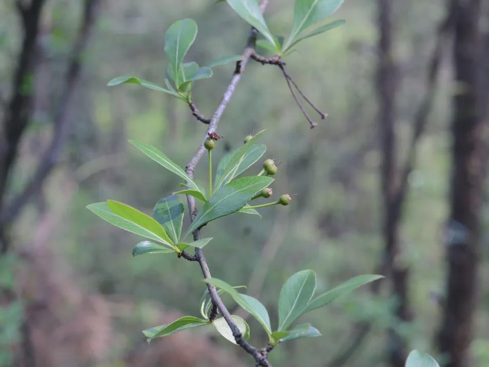 凡强教授介绍,相较于常见的豆梨,昭璇梨为灌木而非乔木,有更小的倒卵形叶子和更短的叶柄,长有密集的枝刺,能更好地的适应丹霞地貌陡坡干旱的生境。目前,昭璇梨仅在广东丹霞山有记录。