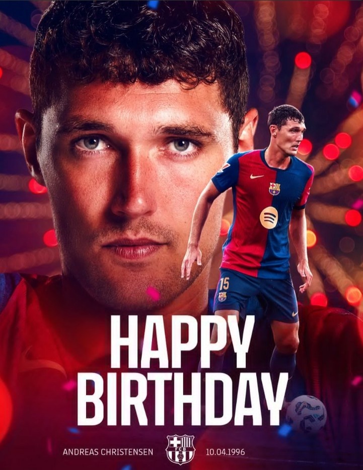直播吧4月10日讯今天是丹麦后卫克里斯滕森29岁生日,巴萨官方也晒出海报为其送上生日祝福。