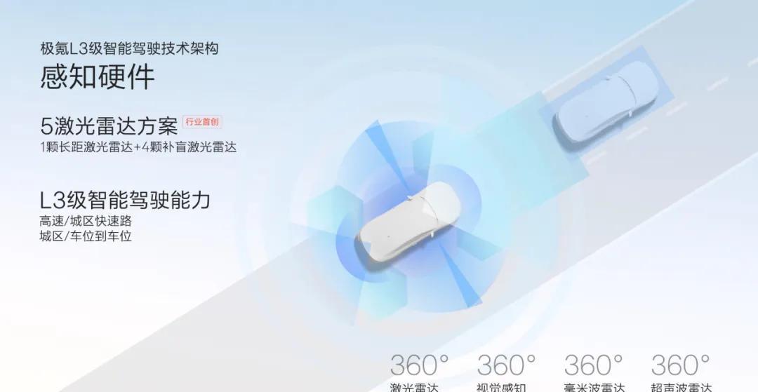 极氪这次不光说车位到车位,还说要搞L3级自动驾驶。这可是个大动作啊,L3可不是闹着玩的。首先,他们用了5个激光雷达,看来是真下血本了。一个长距的,四个补盲的,听着是挺全面的。不过,这么多激光雷达,成本肯定不低吧不知道最后卖车的时候,这成本怎么算。