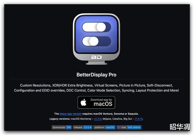 BetterDisplay 不仅能轻松解锁显示器的所有原生分辨率、一 键启用各种分辨率下的 HiDPI 模式,还能创建虚拟显示器。最方便的是,它允许你用鼠标直接调整显示器亮度和色彩。虽然软件本身收费,但免费版的功能已经足够。