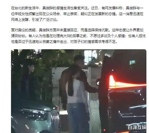 公众舆论,具俊晔能否承受之重?随着事件的持续发酵,公众舆论对具俊晔的压力也越来越大。一方面,他需要面对来自网友们的质疑和指责;另一方面,他还需要处理与大S家人之间的关系。在这样的压力下,具俊晔能否保持冷静和理智成为了一个关键问题。