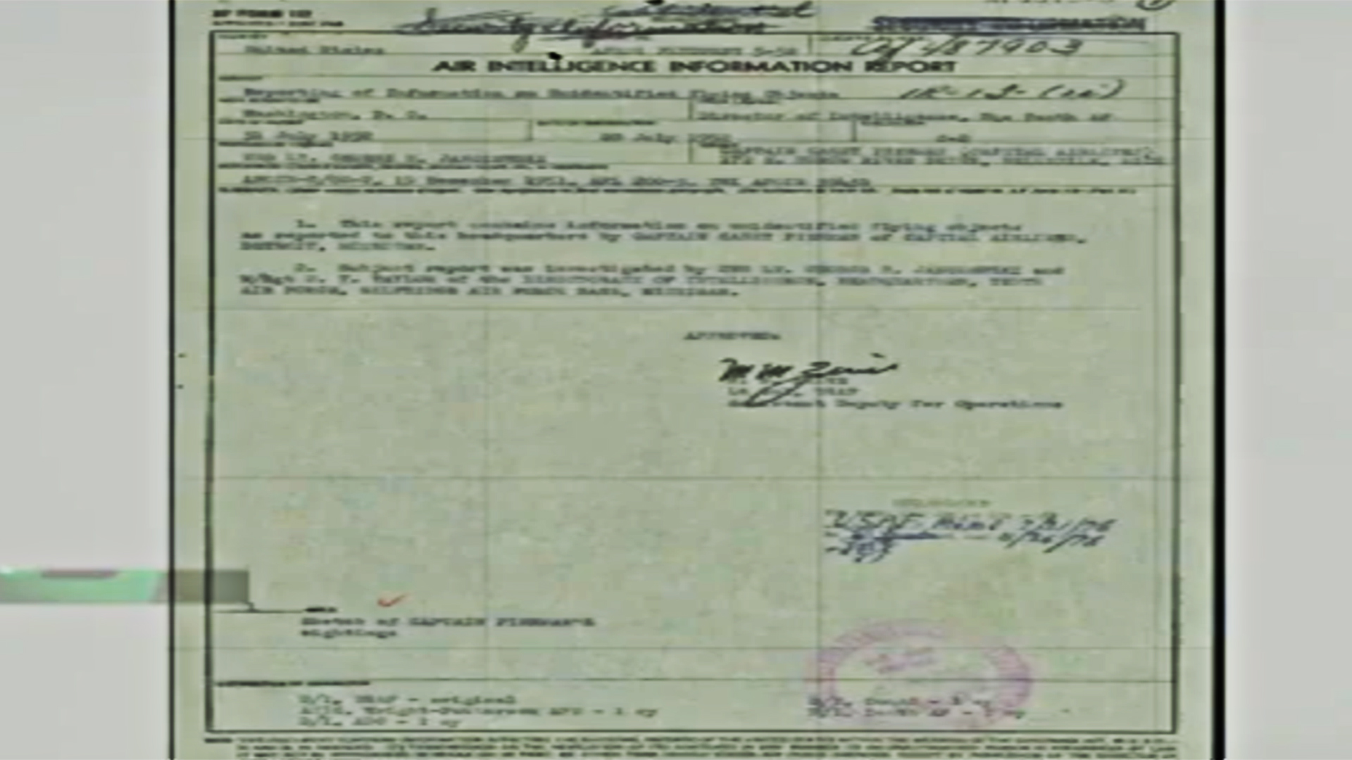 这份报告于1952年7月20日由一位情报局局长发布,内容是华盛顿特区上空出现不明飞行物,报告距离事发时间为十一天。