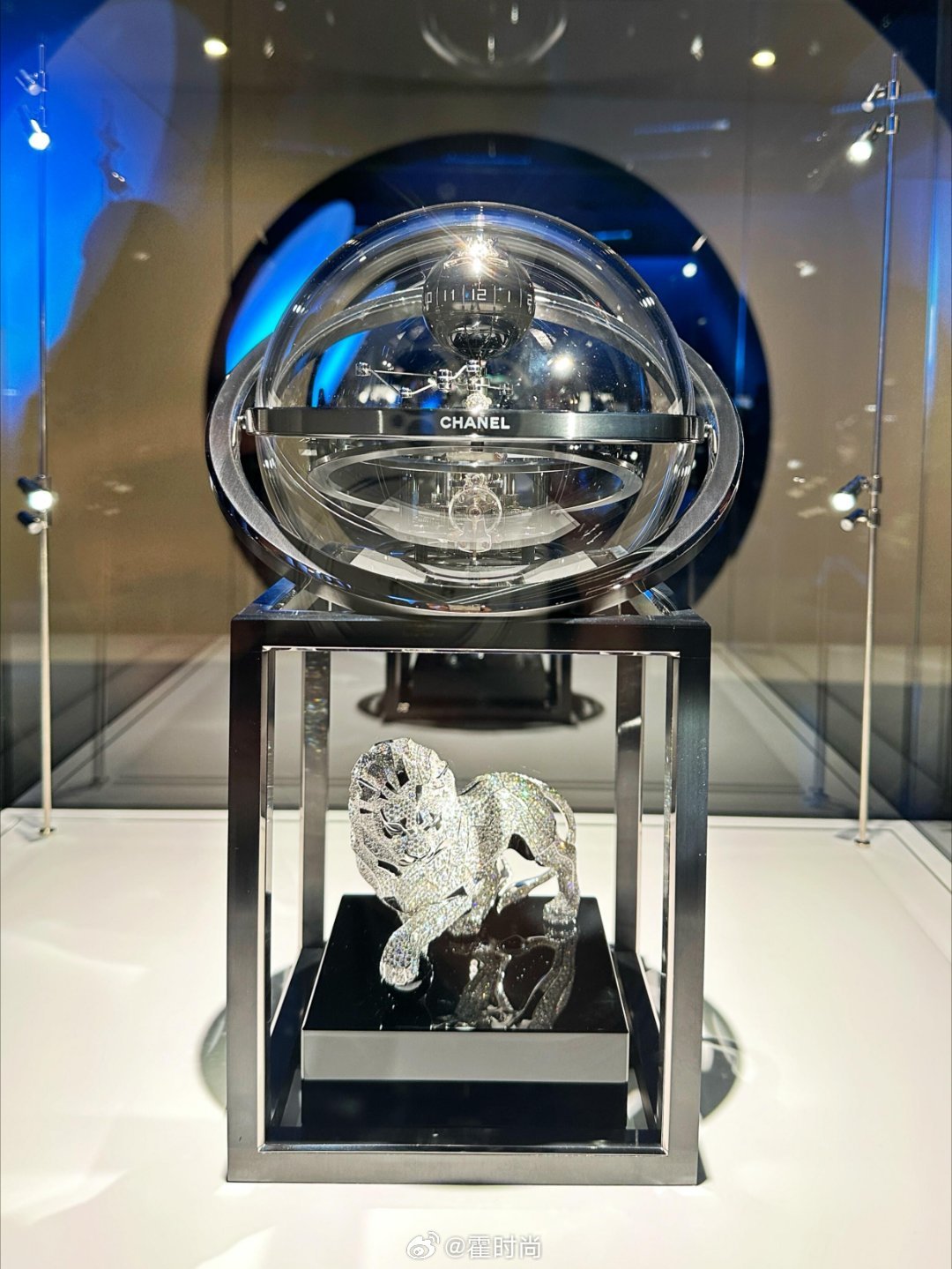 除蓝色系腕表,香奈儿还带来惊喜。J12 BOX “DRIPPING ART”礼盒内五枚腕表,表盘有指甲油滴落效果,俏皮有趣;J12 PINK PALETTE腕表,在黑色陶瓷表壳上用58颗渐变粉红蓝宝石,复刻唇膏经典色彩 。以狮子为灵感的DIAMONDS ASTROCLOCK座钟,白K金雕琢的雄狮镶嵌5037颗钻石,守护天文钟装置 ;PREMIÈRE腕表从5号香水瓶盖和皮穿链获取灵感,精致优雅 。