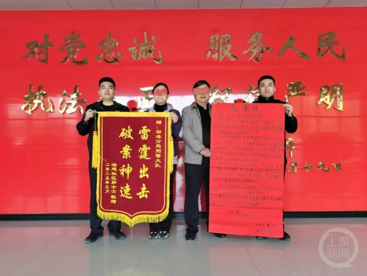 郭女士将感谢信和锦旗送到办案民警手中。河北省公安厅