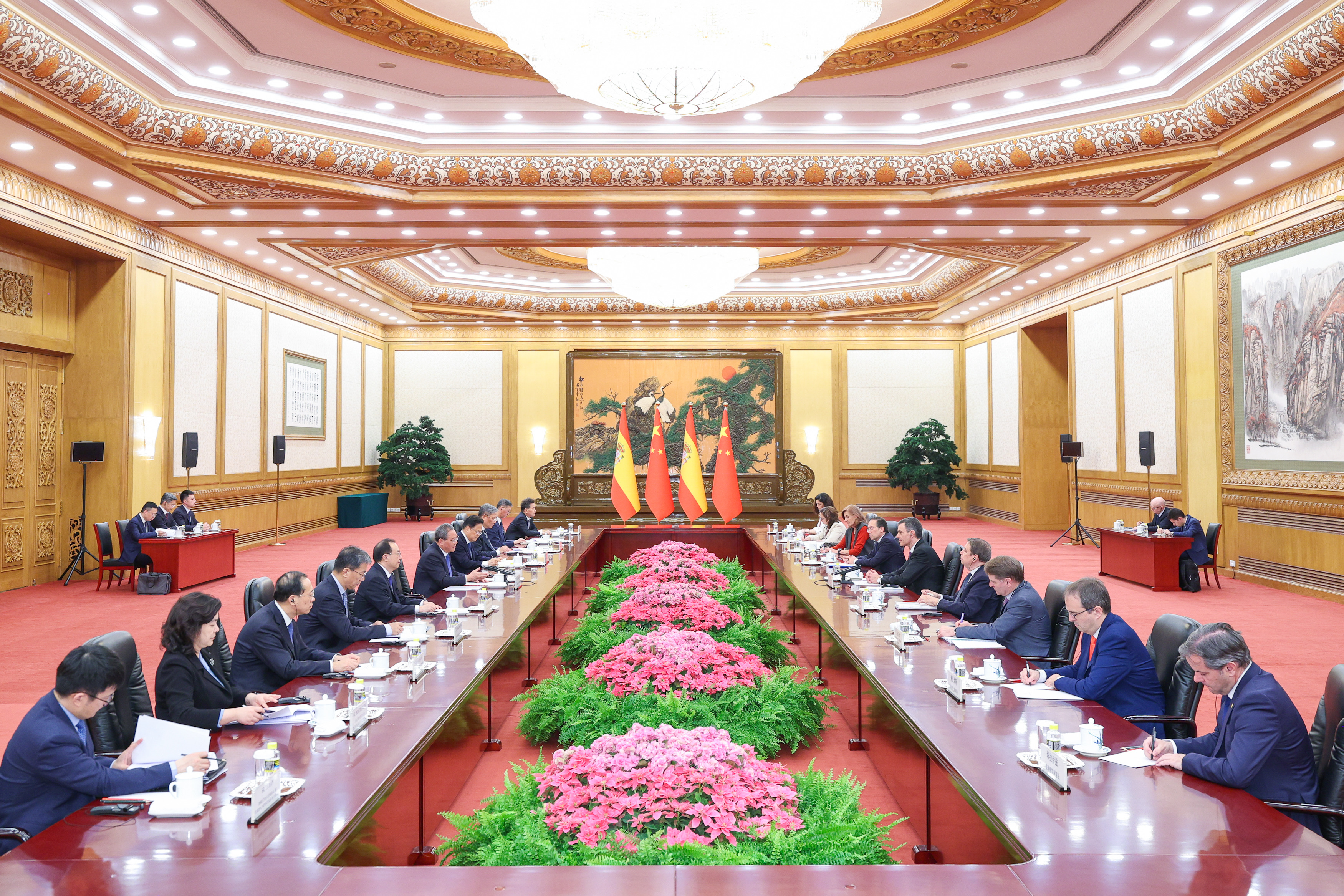 4月11日下午,国务院总理李强在北京人民大会堂同来华访问的西班牙首相桑切斯举行会谈。