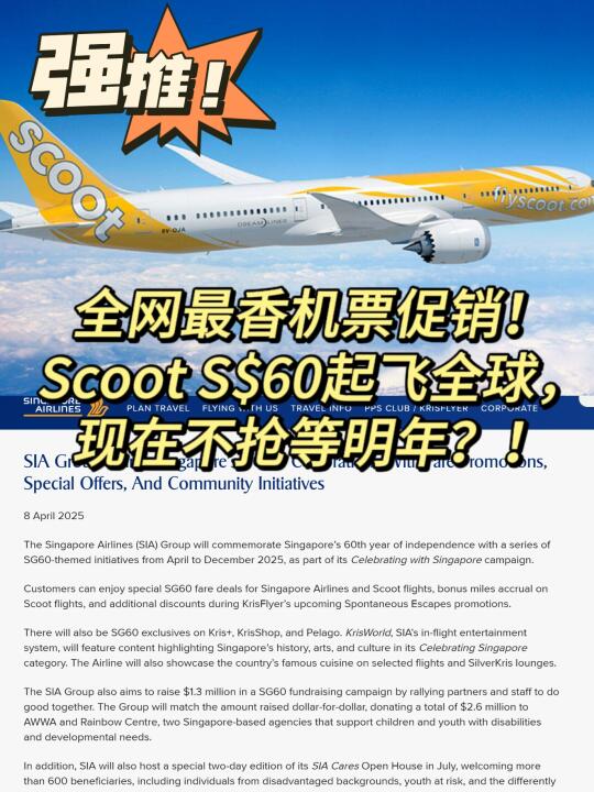 Scoot又来搞事啦!这波超强机票促销真的必须冲!