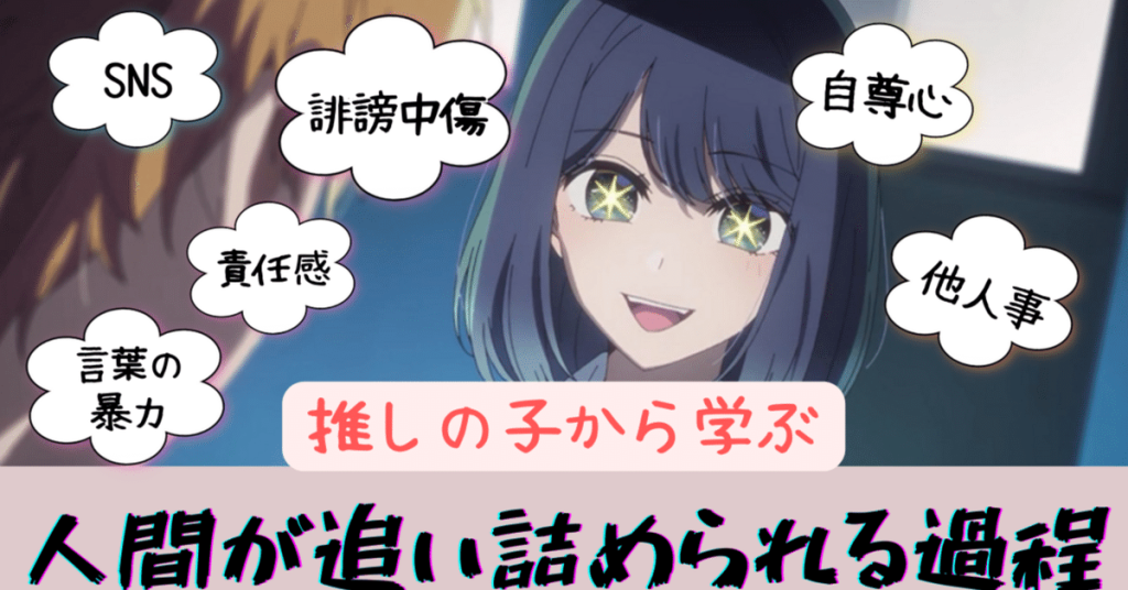 《我推的孩子》将日本令和的演艺环境作为题材,详述了人物的人格形成,在展现“推崇文化”世界观的同时,也将过去的偶像观由平成的“大写”更新为了令和的“小写”。此时,人们憧憬偶像的理由、实际想要成为偶像的心理、作为偶像的人的苦恼等要素就成了刺激读者和观众的痛点,使得不过是作品内设定的虚构人物,变身为拥有独特人格的角色,并得到认可。