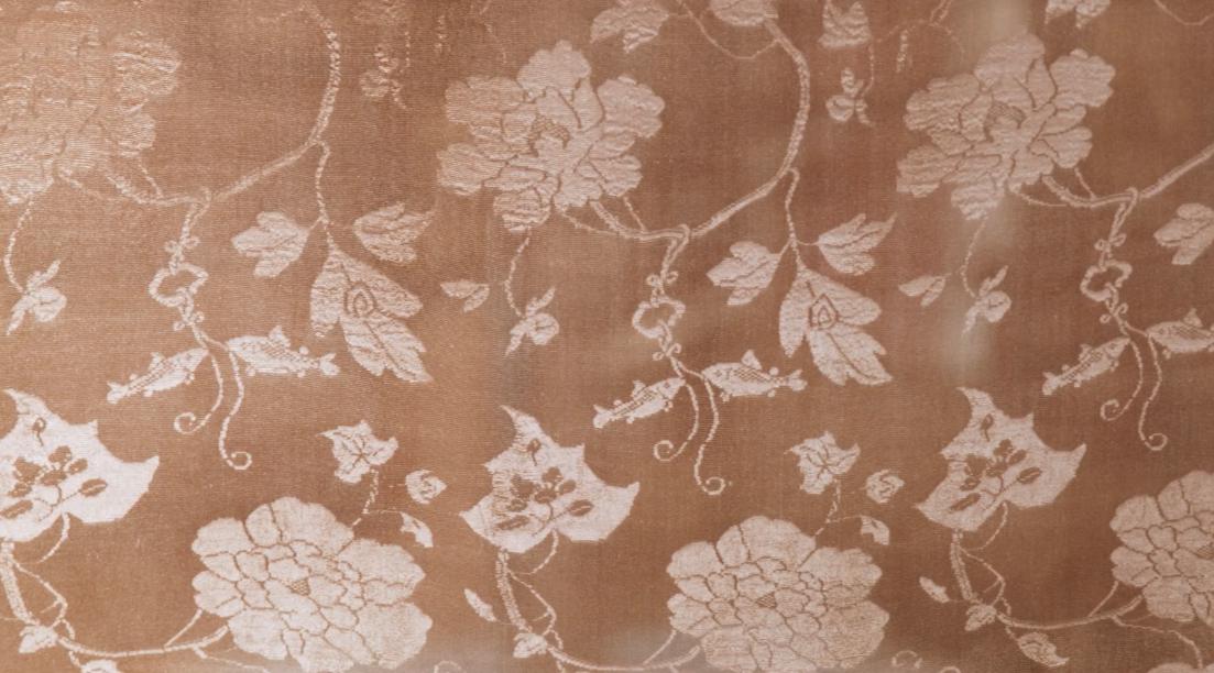 此外,该文物出土时已为黄褐色,暗花纹样已难以直接采样,为了更准确地进行纹样的复原,采样过程中还借助现代高清扫描设备,拍摄显微细节图达几百张,“通过显微细节图的组织分析,区别花部和地部,以更精准地还原文物本色。”光这个过程,他们就耗时整整6个月,分析核对了上百万个组织点,才成功分析出三经绞罗的单循环纹样样式:芙蓉牡丹折枝纹,穿插双鱼结,部分叶内饰有菱形朵梅,体现了宋代雅致之风。