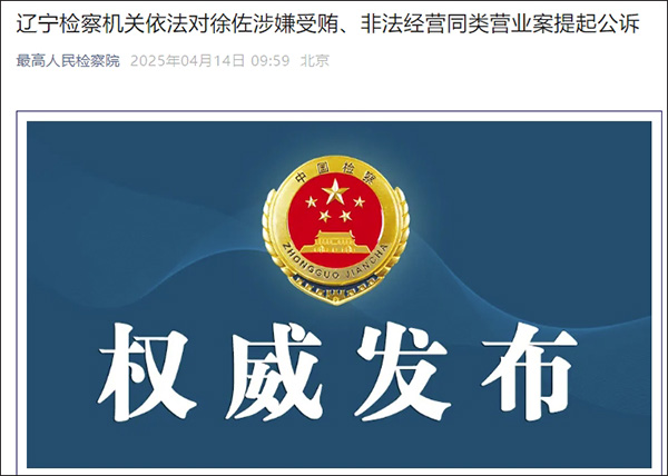 日前,经最高人民检察院指定管辖,辽宁省人民检察院依法以涉嫌受贿罪、非法经营同类营业罪对徐佐作出逮捕决定。案件正在进一步办理中。
