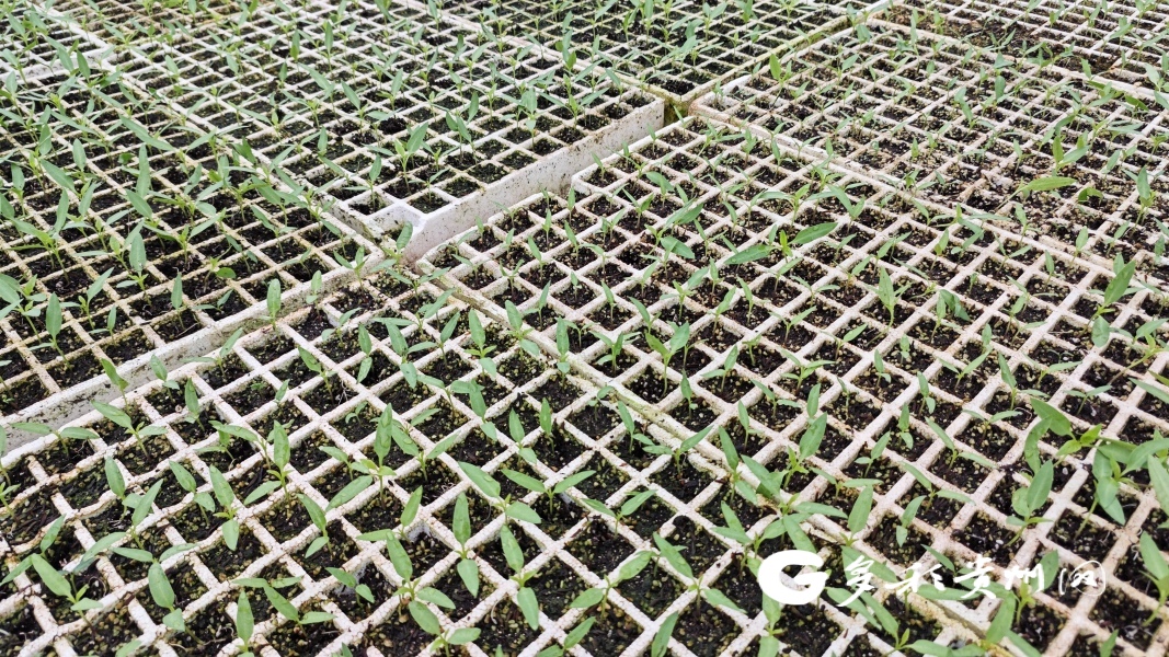 4月10日,在贵定县云兴休闲农业旅游开发有限公司辣椒育苗基地,一株株辣椒苗排列整齐、绿意盎然,长势喜人。而在育苗基地的一角,育苗工人正忙着将刚刚长出的辣椒幼苗移植到穴盘里,为幼苗提供相对独立且适宜的生长环境,确保幼苗更加健壮。