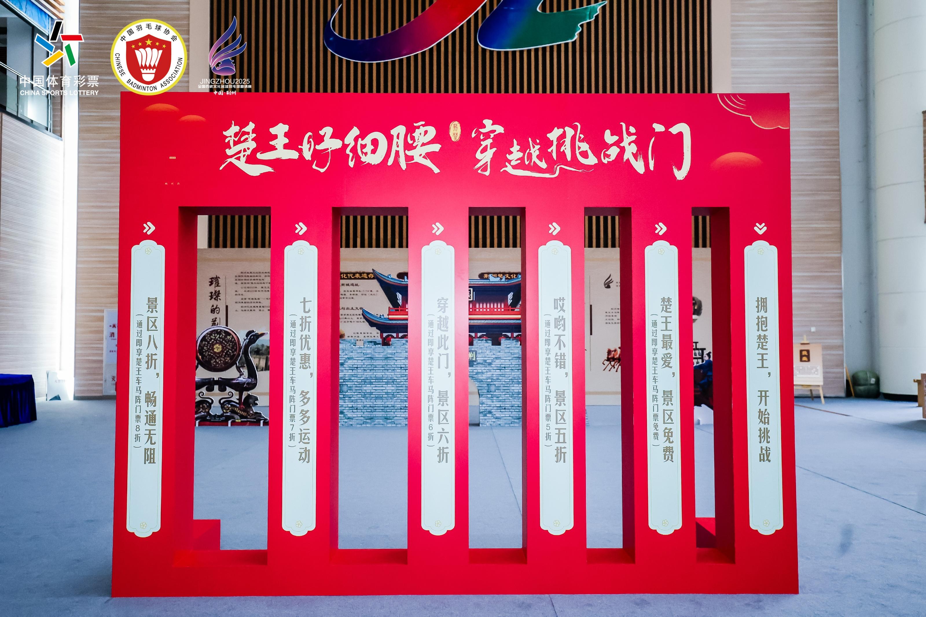 在赛场之外,选手和观众们“跟着赛事去旅行”,也充分感受了荆州“楚文化”的魅力。大家穿古城、赏美景、品美食,赛事经济、体育消费活力持续释放。活动期间,组委会还组织参赛选手走进荆州古城宾阳楼、张居正故居、关帝庙等景区,感受荆州深厚的历史文化底蕴。赛场入口处还设置了战国袍(汉服)打卡、非遗项目展示和体验、楚文化小游戏等多彩荆楚文化体验活动以及羽毛球运动趣味小游戏,吸引了不少人参与。