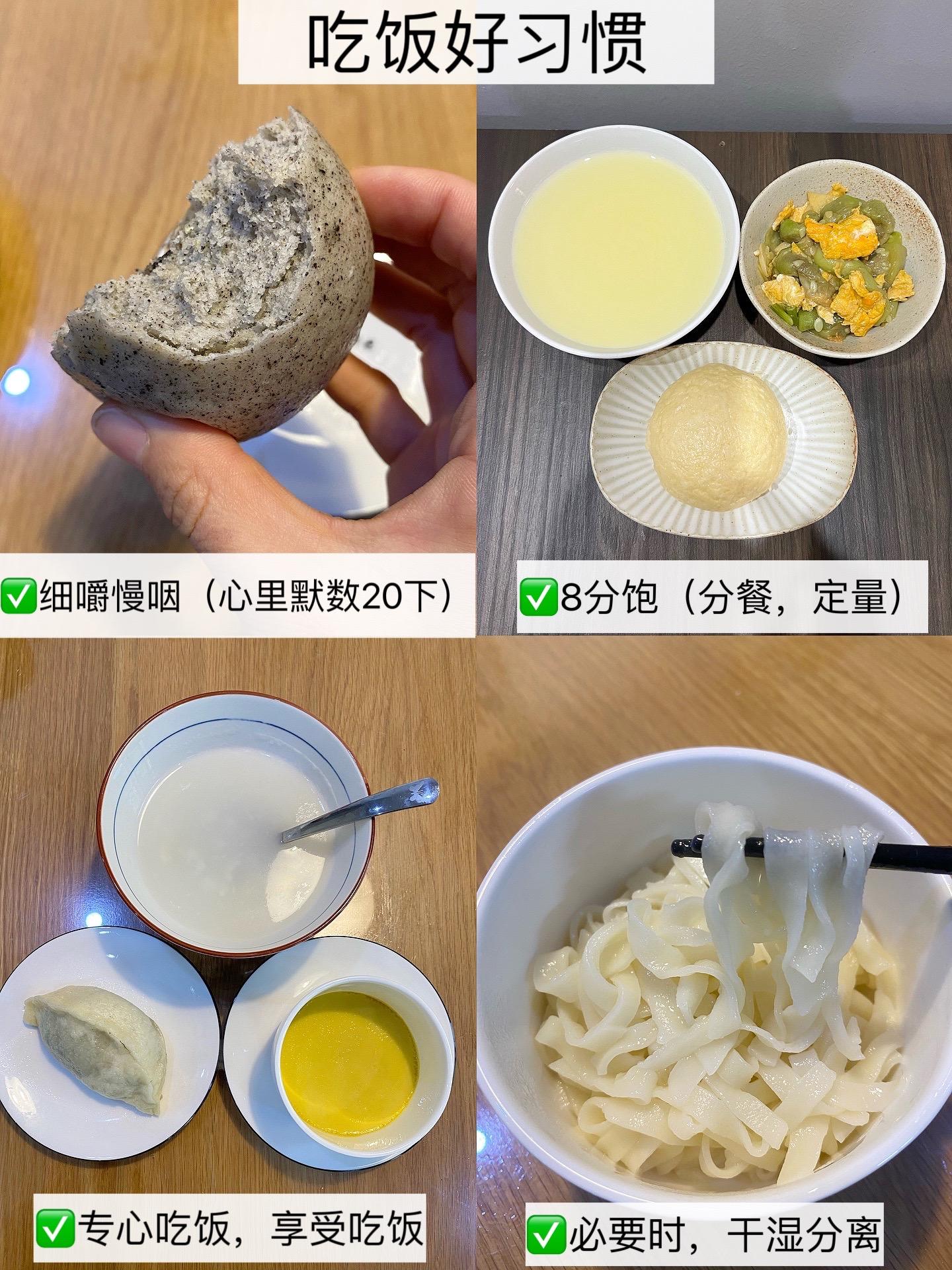 √7-8分饱(吃的差不多的时候,在心里跟自己对话:不要再吃了,放下你的筷子,此刻会舒服,再吃就难受。)