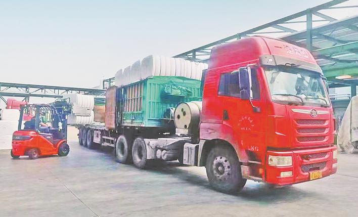 石家庄常山恒新纺织有限公司从江苏购买的原材料装车。