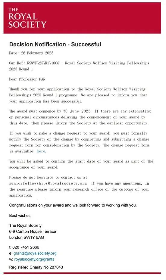 文中指出,该校材料科学与工程学院范冰冰教授受到英国皇家学会沃尔夫森奖学金(RoyalSocietyWolfsonFellowships)资助,资助金额为13.12万英镑。