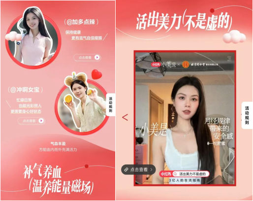 线上,小红书发起#活出美力不是虚的有奖话题活动,由小红书「小美说」发布官方话题笔记,同步线上邀请多位小红书博主分享自己补气养血调理经期的日常,铺量种草产品,持续打造高共鸣情感认知。