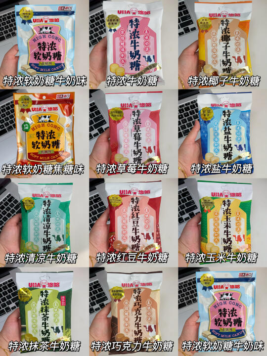 不买不知道,原来有这么多口味:特浓软奶糖、特浓牛奶糖、特浓软奶糖焦糖味、特浓抹茶牛奶糖、特浓巧克力牛奶糖、特浓清凉牛奶糖、特浓盐牛奶糖、特浓红豆牛奶糖、特浓玉米牛奶糖、特浓草莓牛奶糖、特浓椰子牛奶糖…[哇R][哇R][哇R]
