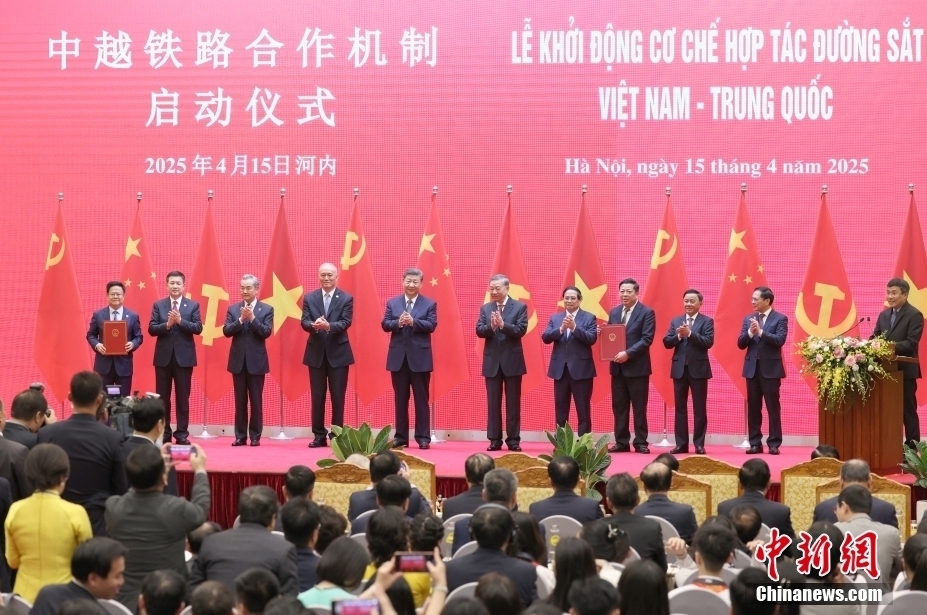 据央视新闻报道,当地时间15日上午,习近平主席在河内国际会议中心同越共中央总书记苏林共同出席中越铁路合作机制启动仪式。