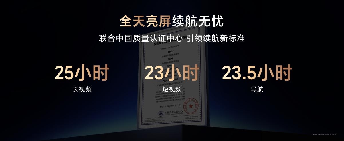 日常使用情况下,中国质量认证中心认证,16.6小时持续亮屏使用,轻松满足用户城市通勤、骑行、露营、爬山等轻户外场景的需求,带来续航无忧的使用体验。
