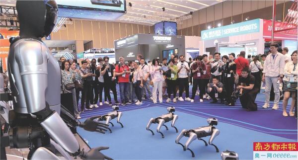 15日9时,展览总面积达52万平方米的广交会一期迎来蜂拥而至的人流。位于友谊大厅的服务机器人展区格外热闹,许多境外采购商高举手机拍摄机器狗、工业外骨骼装备、自动巡航机器人等画面。