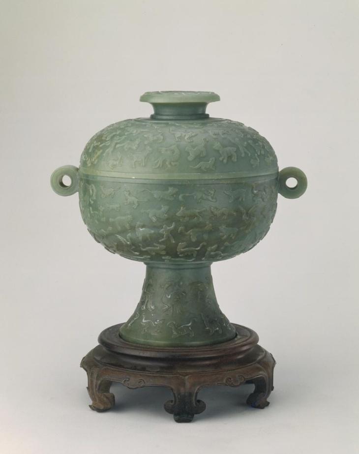 △清青玉人物飞禽走兽纹豆故宫博物院藏