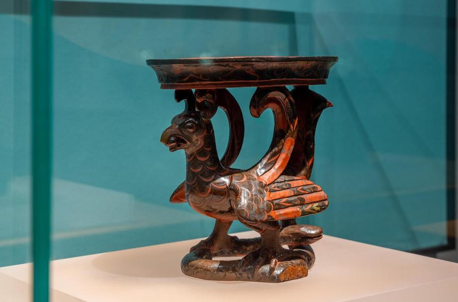 △战国彩绘朱雀攫(jué)蛇漆豆安徽博物院藏