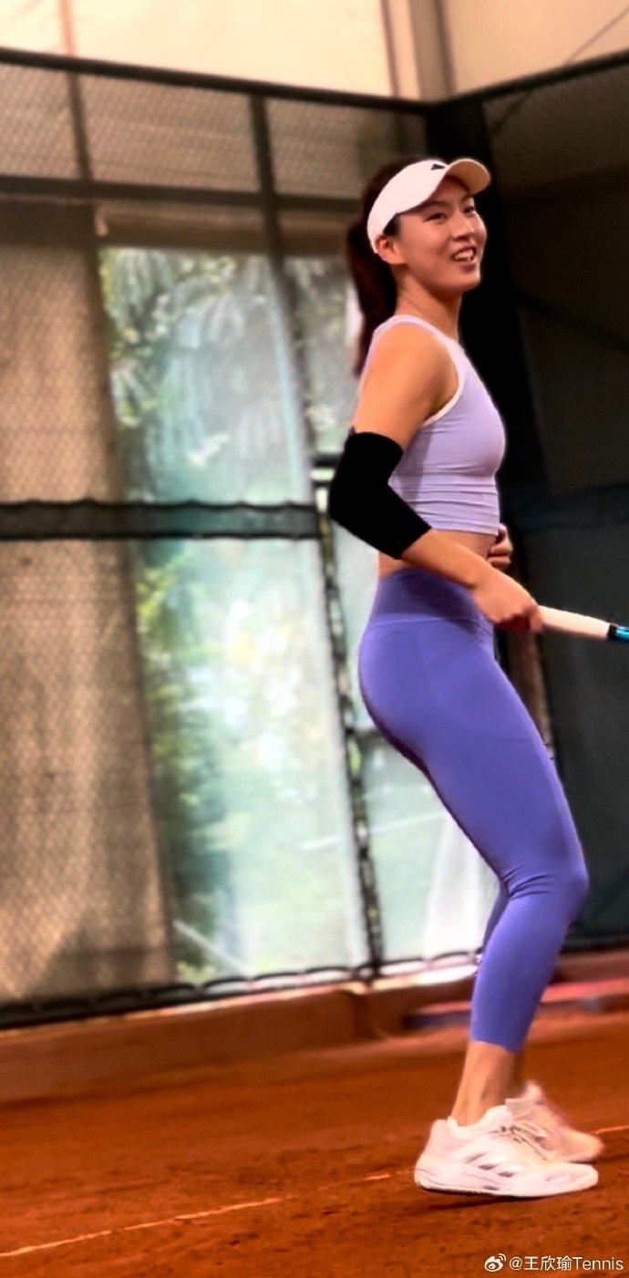 王欣瑜身穿紫色运动背心出现在红土场地,并配文写道:备赛日常碎片打卡。