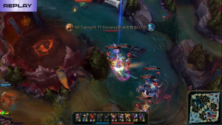 [3251]大龙刷新,NS再开大龙,Faker岩雀开车进场隔开kingen,Smash击杀Lehends后再杀Calix拿到双杀,Gideon波比吃掉大龙,Smash再逮捕Jiwoo泽丽,