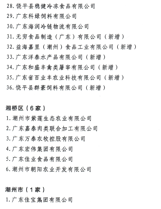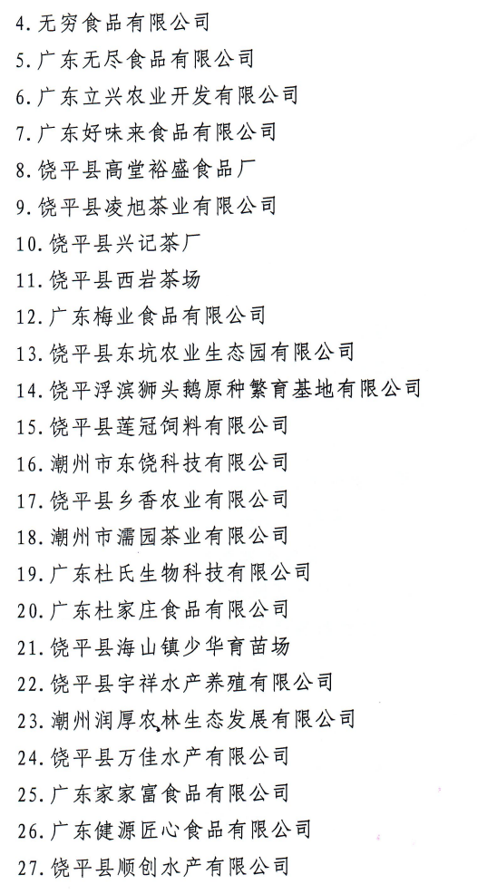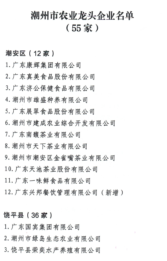 潮州市最新农业龙头企业名单
