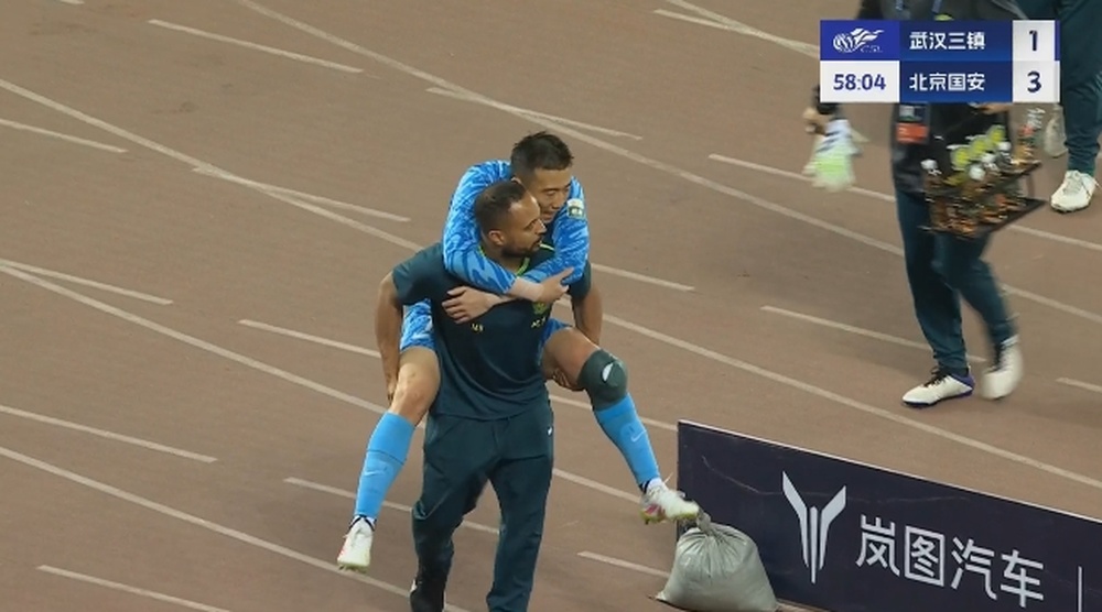 韩佳奇在国安4-4三镇的比赛第55分钟受伤,他在接受简单治疗后仍完全无法行走,被队医背下场。