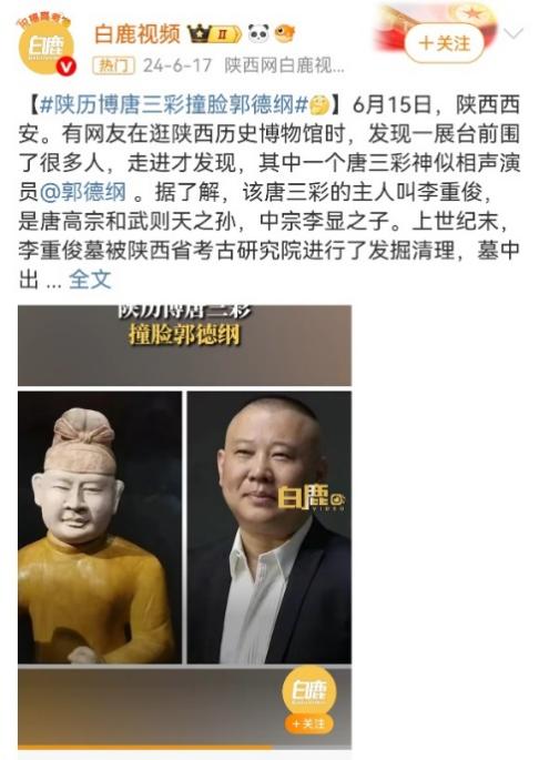在陕西历史博物馆,有一尊三彩牵马俑,从长相到神态神似相声演员郭德纲。